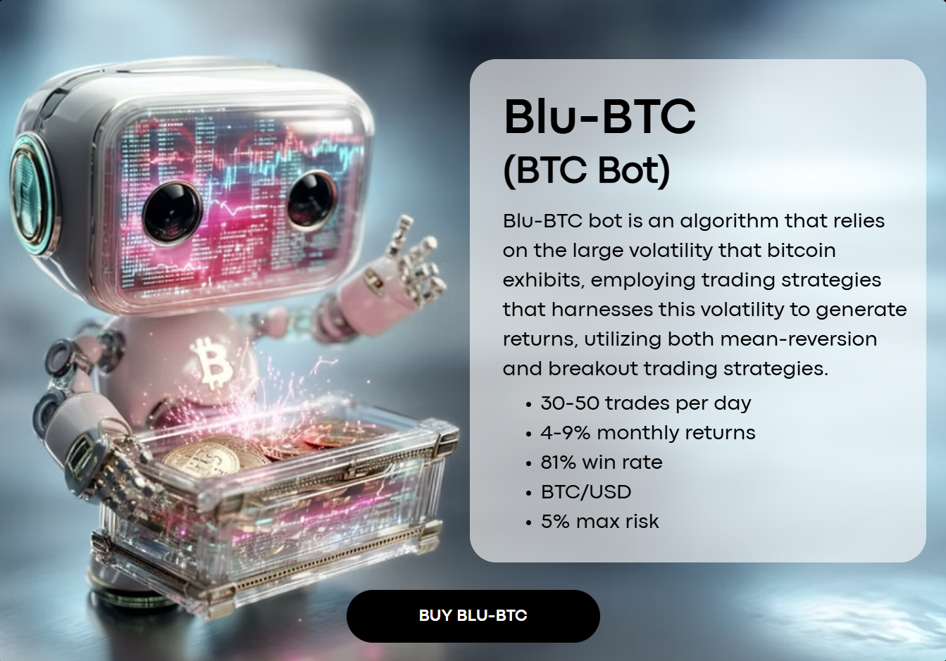 Gain unlimited access to BluStar AI’s advanced trading bots, cutting-edge automation, and proven strategies from quants worldwide. Whether you’re deploying the Blu-Gold Bot’s pattern recognition for gold markets, the Blu-BTC’s volatility harnessing for Bitcoin, or the Blu-EUR’s momentum plays for forex, our 3-Bot Package empowers you to scale returns through real-world performance data, balanced risk controls, and long-term growth. Join informed investors leveraging data-backed AI for seamless setup, consistent returns, intelligent risk management, and more—no emotions, just reliable, hands-off trading to multiply your capital.